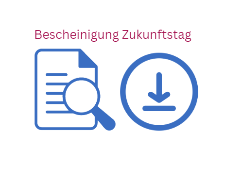 HIER können Sie die Bescheinigung der Schule zur Teilnahme Ihres Kindes am Zukunftstag (23. April 2026) herunterladen und ausdrucken. Tragen Sie den vollständigen Namen Ihres