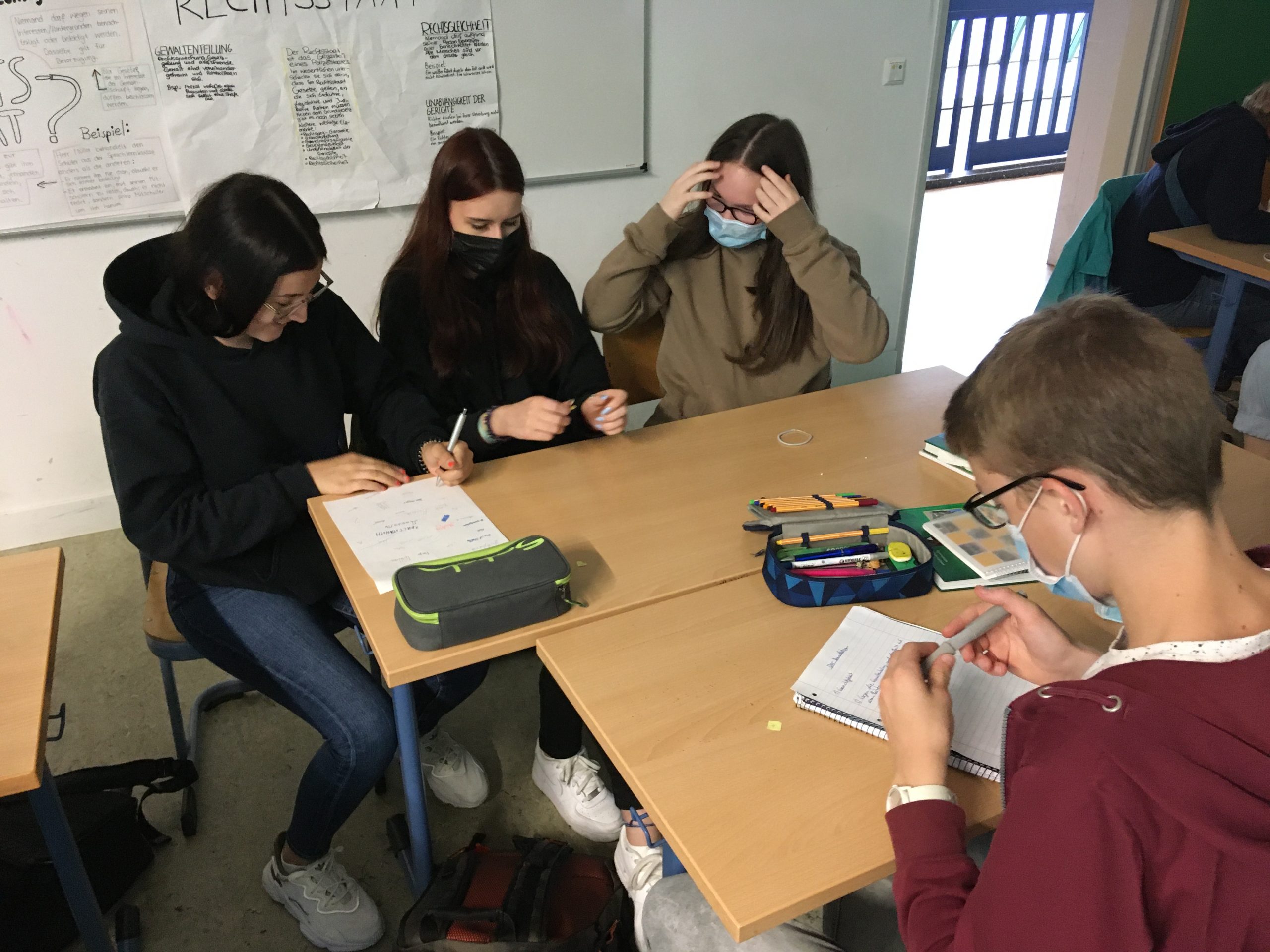 Im Politikunterricht hat sich die 9a intensiv mit dem Thema „Rechtsstaat“ beschäftigt und sich dabei auch die aktuelle Situation in Belarus genauer angesehen. Dort werden unter der Lukaschenko-Regierung viele junge Menschen ins Gefängnis gesteckt, rechtsstaatliche Grundsätze gelten kaum noch. Die Klasse 9a hat sich dabei an der Aktion „100x Solidarität“ beteiligt und einen Brief an einen politischen Häftling geschickt. Einzelne Schüler*innen haben hier auch ihre Russischkenntnisse einbringen können. Der Brief ging an den Chemiestudenten Arcëm Bajarski. Er wurde erstmals am 16.11.2020 festgenommen, bei seiner Verhaftung schwer geschlagen und zu 15 Tagen Haft verurteilt. Am 24.3.2021 wurde er erneut gewaltsam von Sondereinsatzkräften festgenommen, die in sein Wohnheim eindrangen und ihn und seine Mitbewohner zu Boden drückten. Einen Tag später erschien in einem regierunsgkritischen Telegramkanal ein Video, das Bajarski bei einem Geständnis zeigte, dass er für Inhalte des bekannten Telegramkanals „My Country of Belarus“ verantwortlich sei. Laut Bajarski wurde er von Polizeibeamten zu diesem Geständnis gezwungen, indem sie ihn mit Schlagstöcken auf Rücken und Hinterteil schlugen. Er sollte eigentlich am 18.4.2021 freikommen, stattdessen wurde er wegen Gefährdung der nationalen Sicherheit angeklagt und kam in Untersuchungshaft.