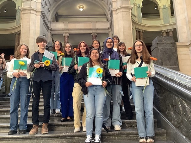 In dieser Woche wurden erneut zwölf Schüler*innen des neunten Jahrgangs ausgezeichnet. Im Mosaiksaal des Neuen Rathauses erhielten sie für ihr Engagement beim Projekt „Lesementoring“ der Stadt Hannover ihren „Kompetenznachweis Kultur“. Die beteiligten Schüler*innen unserer Schule haben ein Halbjahr lang einmal wöchentlich Kinder unserer benachbarten Grundschulen spielerisch und als lesende Vorbilder beim Ausbau ihrer Lesekompetenz unterstützt. „Wer lesen kann, ist klar im Vorteil“ heißt es redensartlich und immer wieder bestätigt sich, wie bedeutsam eine gut ausgebildete Lesekompetenz für eine erfolgreiche Schullaufbahn ist. Vor diesem Hintergrund wurde der Einsatz unserer „Mentis“ im Rahmen eines Festaktes gewürdigt und auch wir sagen danke an unsere zwölf kulturkompetenten Mentis und an Frau Lüddecke für die Orga und Koordination des Lesementorings bei uns an der Schule.