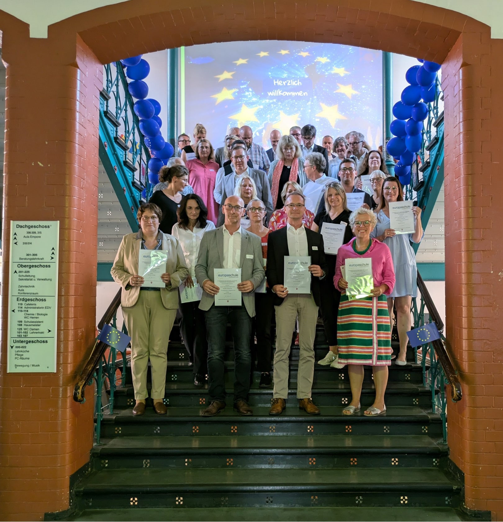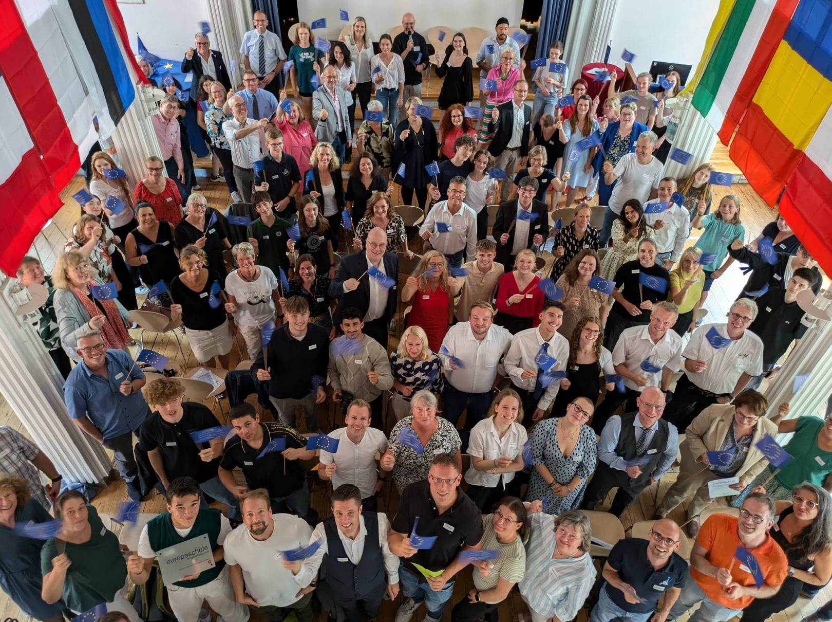 Wir haben es wieder geschafft! Seit dem 04.09.24 darf sich das Kurt-Schwitters-Gymnasium Misburg erneut und? weiterhin Europaschule in Niedersachsen nennen. Mit der Rezertifizierung dürfen wir für weitere fünf Jahre diese Bezeichnung führen. Das ist eine großartige Anerkennung der Arbeit in verschiedenen Bereichen im und außerhalb des Unterrichts, um unseren Schülerinnen und Schülern die Möglichkeit zu geben, Europa und die europäischen Institutionen kennenzulernen. Angefangen beim Fremdsprachenangebot über Austausch- und Studienfahrten bis hin zu Einladungen von Abgeordneten auf europäischer Ebene oder die Teilnahme am Erasmus-Plus-Programm tragen viele Bausteine des Schullebens dazu bei, dass der europäische Gedanke in unserem Profil tief verwurzelt ist. Besonderen Dank gilt hierbei Herrn Holst, Frau Özdemir und Herrn Roth, die sich im Rahmen des Rezertifizierungsprozesses durch den notwendigen Antragsprozess gekämpft haben.