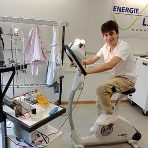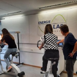 Nach einer Pause ging es für die Klasse in das nächste Experiment. Durch das Treten von den Schüler:innen auf einem angeschlossenen Fahrrad, wurde ebenfalls eine Elektrolyse erzeugt und auf einem anderen Fahrrad Watt. Als Endergebnis kam heraus, dass die Schüler:innen für 1 Kilowatt 10 Stunden sich sportlich engagieren müssten auf dem Fahrrad. Zum Glück müssen wir dies nicht tun für unseren täglichen Gebrauch von elektronischen Leistungen ;).