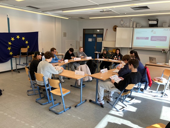 Am 2. Oktober 2025 nahm die Klasse 10a an einem EU-Planspiel teil. In dem Planspiel ging es darum, sich in unterschiedliche Rollen innerhalb des EU-Parlaments hinein zu versetzen. Wir schlüpften in die Rollen unterschiedlicher Politiker*innen und diskutierten über aktuelle Themen wie zum Beispiel Hate Speech oder Deep Fakes. Dabei gab es eine Herausforderung: Jeder hatte eine vorgegebene Meinung in der eigenen Rolle, die möglicherweise nicht mit der eigenen übereinstimmt.