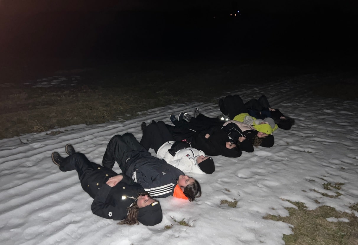 Dafür hatten wir zwischendurch immer mal wieder Freizeit. In dieser durften wir zudem eigenständig unterwegs sein, um z. B. den Sonnenaufgang anzuschauen, zum nächstgelegenen Supermarkt zu laufen, die Sterne zu beobachten oder den Schnee zu nutzen und auf den Hügeln vor dem Haus rodeln zu gehen.