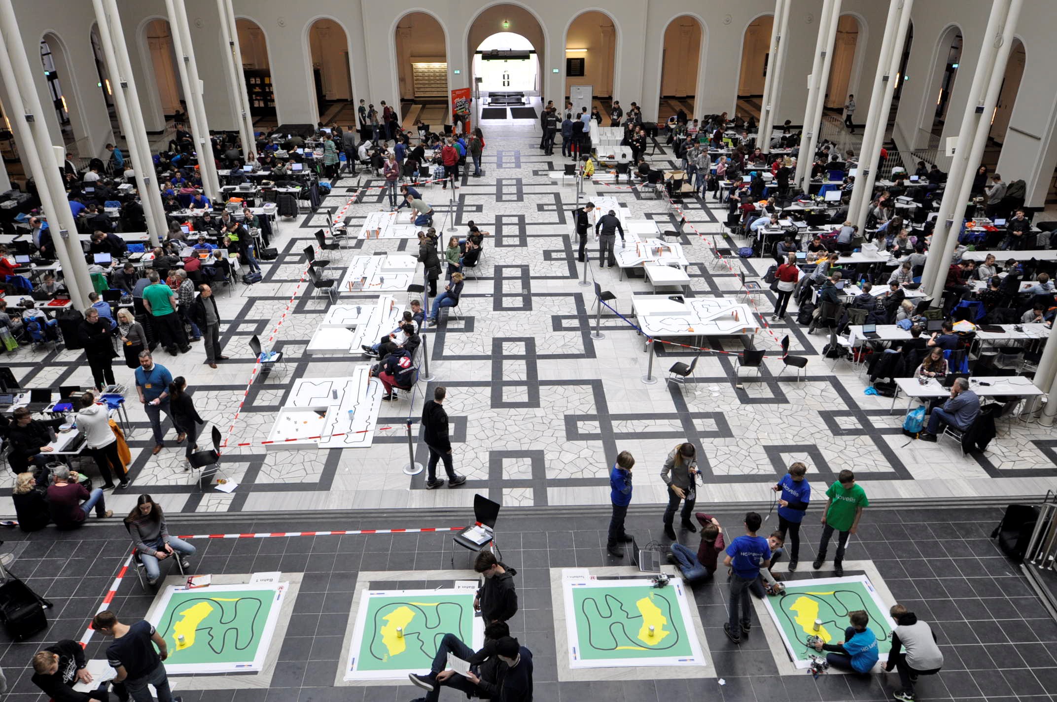 Einmal im Jahr nehmen alle Freiwilligen 3 Tage im März am RoboCup in der Universität teil. Hier messen sich die Schüler*innen mit ca. 400 anderen Schüler*innen, knüpfen Kontakte und haben Mal Zeit, sich lange und intensiv mit dem Roboter zu beschäftigen.