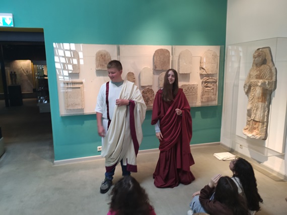 Um die Lebenswelt der Römer noch eindrücklicher zu erleben, hat der Lateinkurs des 6. Jahrgangs im Juni das August-Kestner-Museum besucht. Hier bekamen wir gezeigt, wie die Römer in ihren Häusern gelebt und dort ihren Alltag verbracht haben. Danach konnten wir unser Latein an echten antiken Grabinschriften ausprobieren und diese übersetzen. Zudem konnten wir selbst ein Mosaik aus vielen kleinen Steinen herstellen und uns wie echte Römer kleiden. Besonders das Kleiden wie ein Römer stellte sich als nicht leicht heraus. Hatte man es aber endlich geschafft, sah das Resultat doch sehr ansehnlich aus, wie auf dem Foto zu sehen ist.