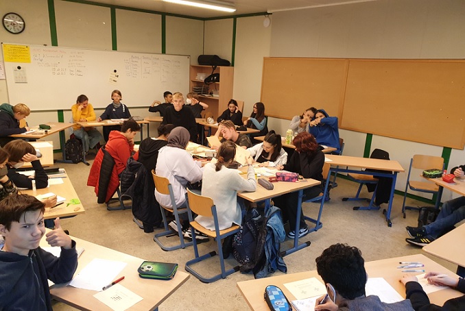 Organisation, Team-geist, mathematische Fähigkeiten und Knobeltalent. Die Goldmedaillen gingen dabei dieses Jahr an die Klassen 5c, 7a und 9b! Herzlichen Glückwunsch! Die Bilder zeigen die rauchenden Köpfe und die Siegerehrung, die Frau Ewald im Forum vorgenommen hat.