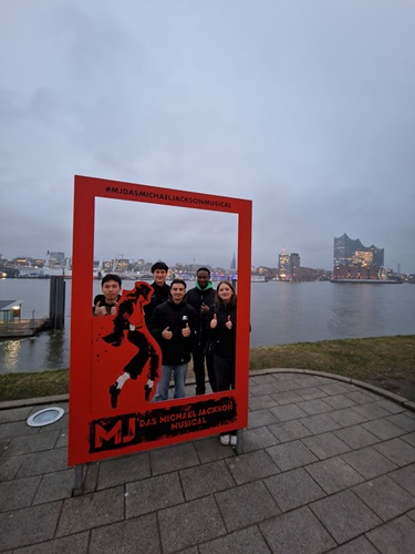 Am Dienstag, den 11. März 2025 haben ca. 30 Schülerinnen und Schüler der Jahrgänge 9 bis 13 das „Michael Jackson Musical“ in Hamburg besucht. Die Abfahrt war um 15 Uhr von unserer Schule. Im Bus hörten die Schüler Musik von MJ und unterhielten sich darüber, wie das Musical ablaufen würde; die Begeisterung der Schülern war im ganzen Bus zu spüren. Um 16:30 Uhr kamen wir in Hamburg an und hatten zunächst Zeit, die Stadt auf eigene Faust ein wenig zu erkunden. Anschließend setzen wir mit einer Fähre zum Stage Theater an der Elbe über. Das Musical begann pünktlich um 19:00 Uhr. Es erzählt die Geschichte von Michael Jackson – wie er und seine Brüder als Kinder unter dem Zwang ihres Vaters Musik lernten und wie später die einflussreiche Tour “Dangerous World Tour” von MJ im Jahr 1992 zustande kam. Der brasilianische Musicaldarsteller Benét Monteiro spielte Michael Jackson und performte zahlreiche beliebte Lieder und Tanzbewegungen von MJ, darunter “Beat It”, “Smooth Criminal”, “They Don’t Care About Us” und “Billie Jean”. Als er MJs berühmtem Moonwalk vorführte, erreichte die Begeisterung des Publikums den absoluten Hochpunkt. Um 22:30 endete das Musical unter tosendem Applaus. Der Verkehr der Rückfahrt floss genauso reibungslos wie die Abfahrt und wir sind um 24Uhr wieder in Misburg angekommen.
