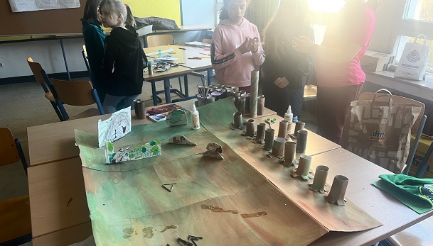 Am Mittwoch, den 01. März 2023, hatten wir den Tag der offenen Tür am Kurt-Schwitters-Gymnasium. Er begann um 16 Uhr, damit alle Interessierten auch Zeit hatten. Bei dem Tag der offenen Tür haben sich verschiedene Fächer vorgestellt: z. B. Geschichte, Mathe, Deutsch, Kunst, Erdkunde u.s.w. Zum Anschauen und Mitmachen! Eingeladen waren die Viertklässler und deren Eltern, Geschwister, Großeltern und Freunde. Die Klasse 5d hat die Viertklässler im Geschichtsraum betreut. Hier konnten sie sich fertige Steinzeitsiedlungen (in Schuhkartons) anschauen und selbst zu einer größeren Siedlung ihren Beitrag leisten.